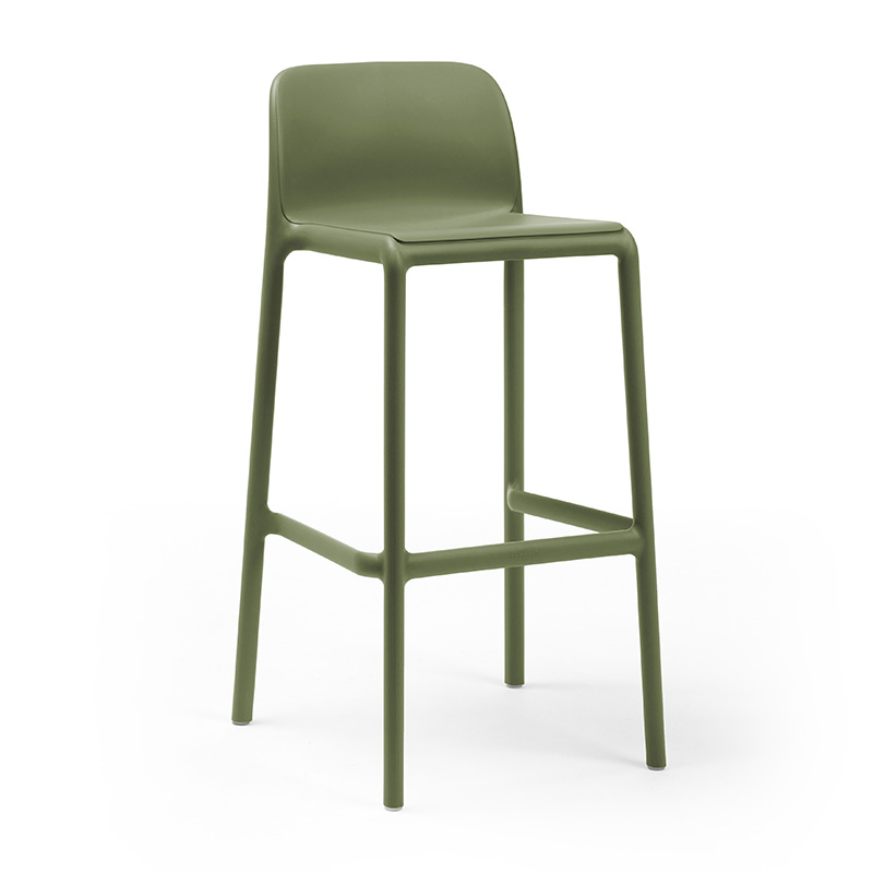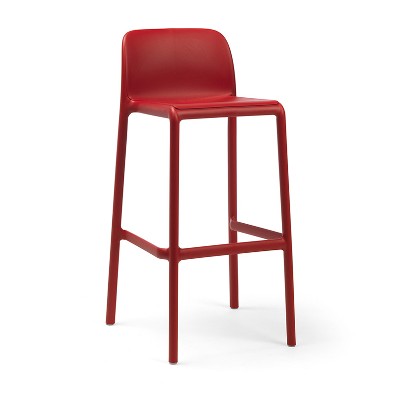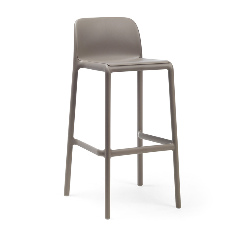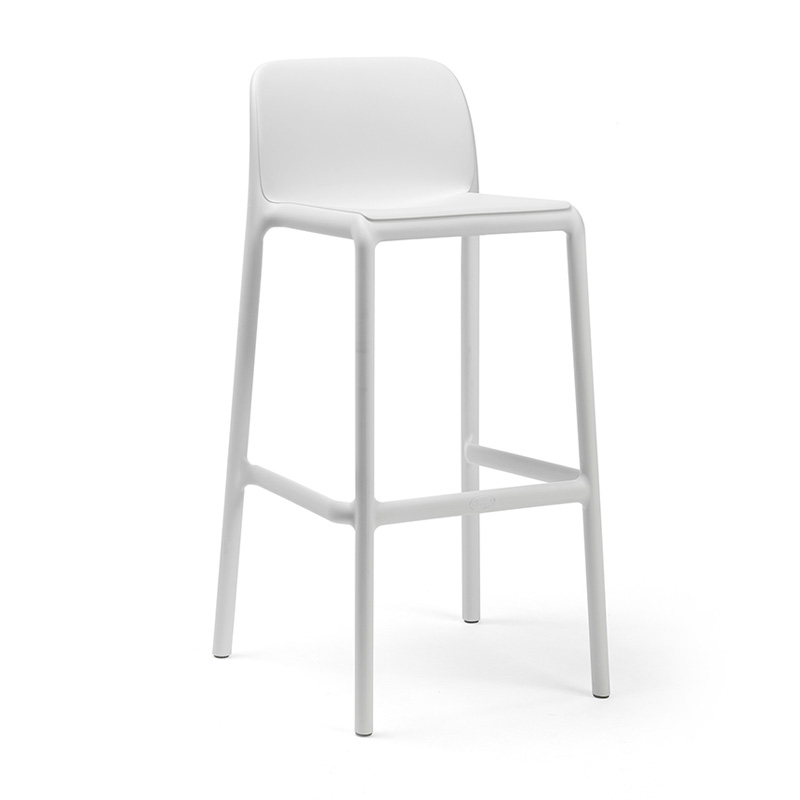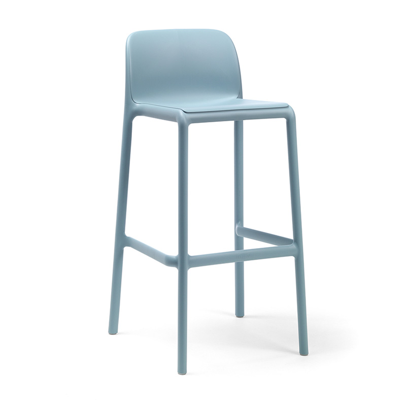 Butaco Faro o taburete ligero y apilable de una sola pieza, con acabado liso y suave, su estructura es tubular redondeado sin interrupciones. Fabricado de resina de fibra de vidrio, polipropileno tratado anti UV pintada efecto mate con tapones antideslizantes por lo que es ideal para exteriores de la marca NARDI Outdoor.