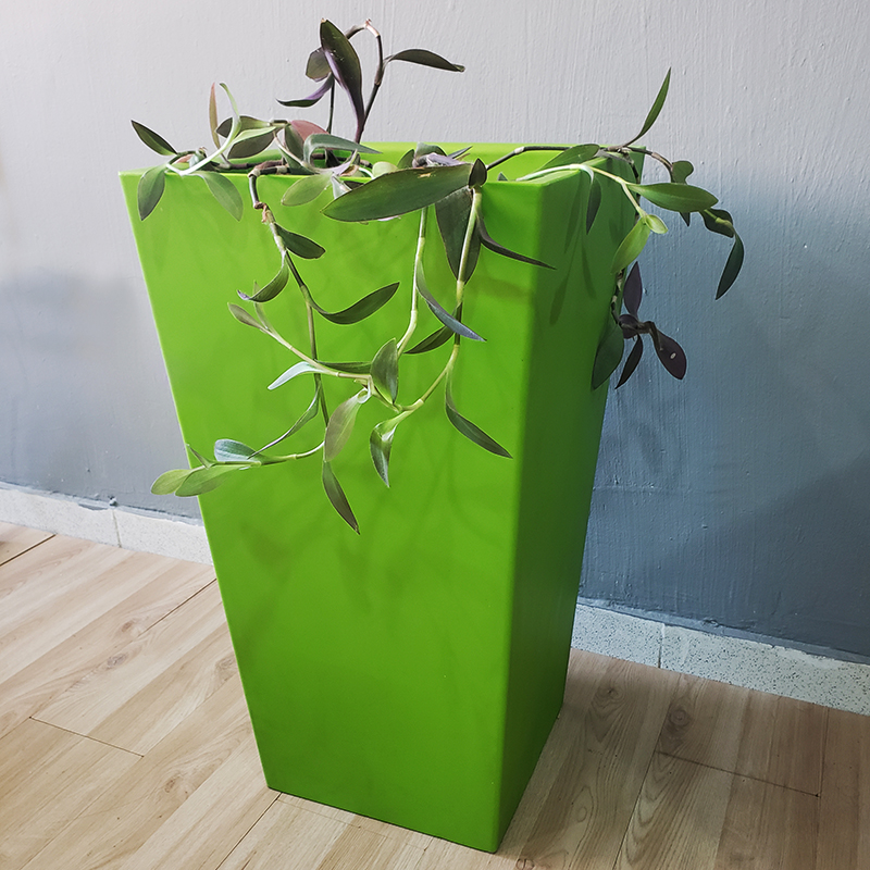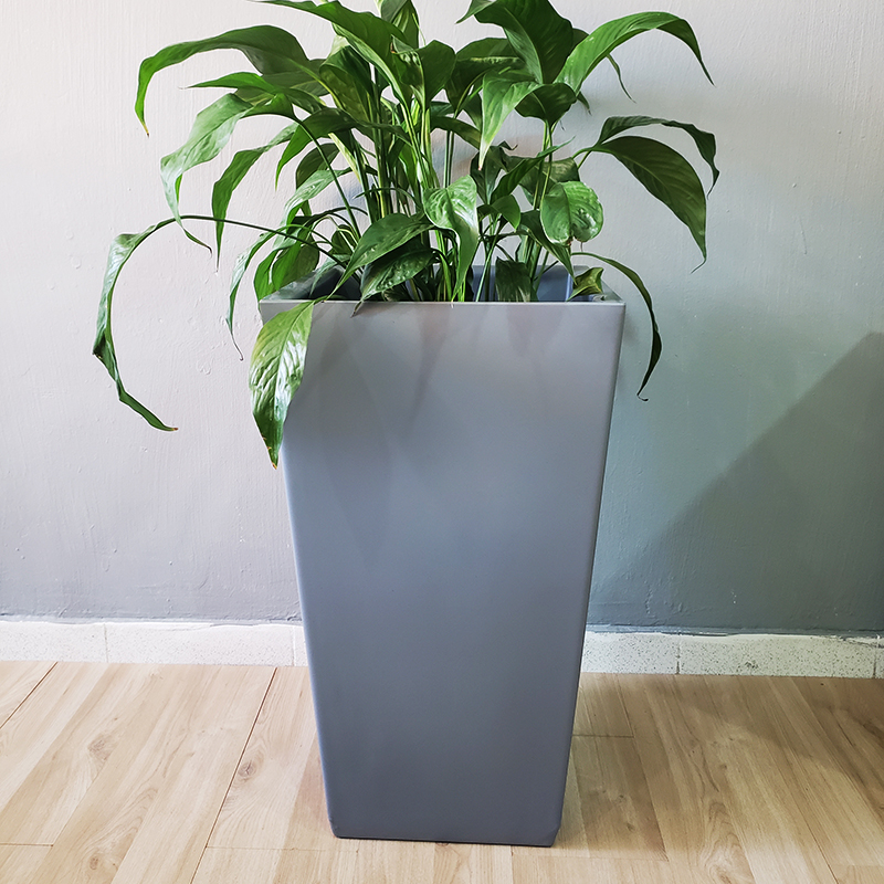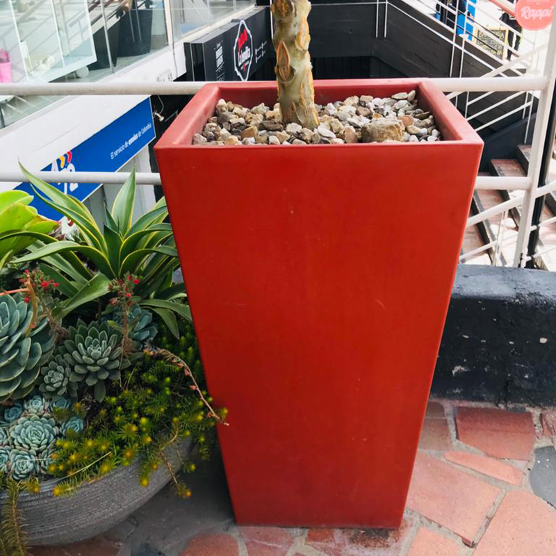 Las materas en este material son modernas y durables, perfectas para dar elegancia a cualquier ambiente; ligeras y resistentes a los rayos UV y a impactos; son lavable con agua a presión y son 100% reciclables.