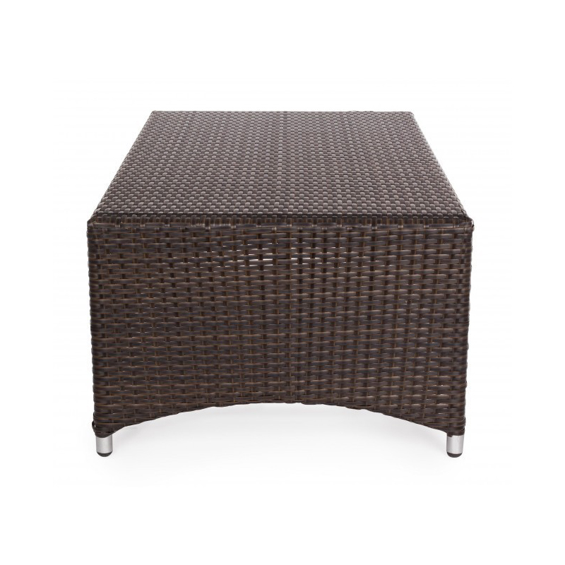 La mesa Ibiza tiene bordes simples y líneas sencillas, es ligera; sin embargo su estructura y fibra es muy resistente, especialmente para permanecer a la intemperie. Elaborada en estructura de aluminio, tejida a mano por artesanos en fibra de rattan sintético, con tapones antideslizantes.
