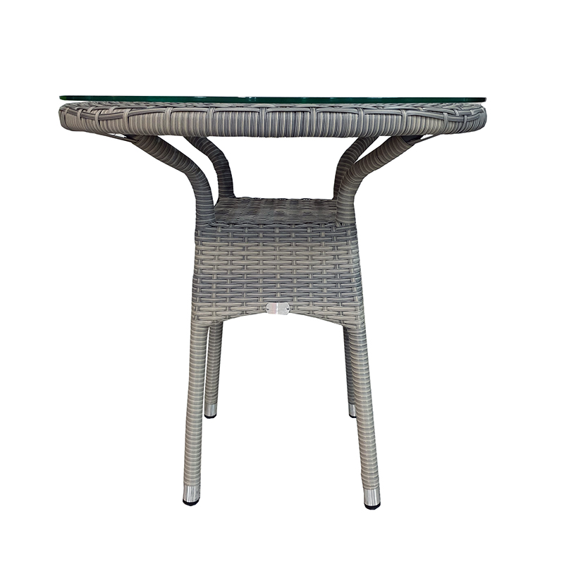 Esta pieza está elaborada en estructura de Aluminio con pintura electrostática, tejido a mano por artesanos en fibra de rattan sintético y con tapones antideslizantes.