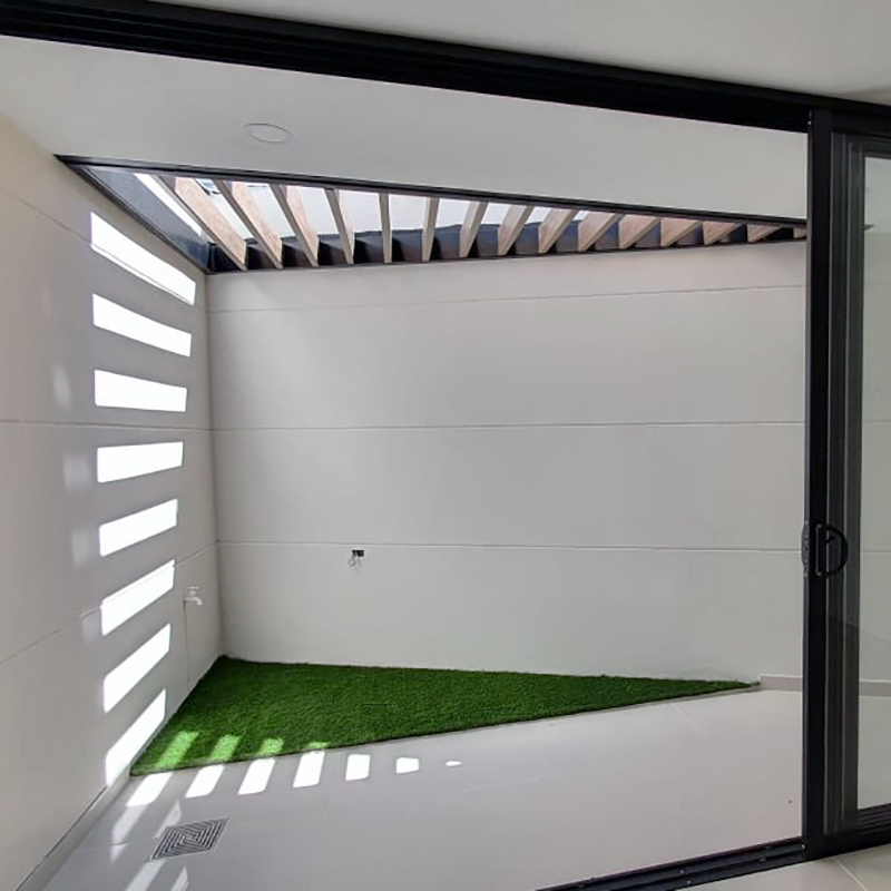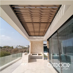 Pérgolas en PVC entre muros moderna, sin columnas perfecta para el disfrute máximo de la frescura de tus espacios al aire.