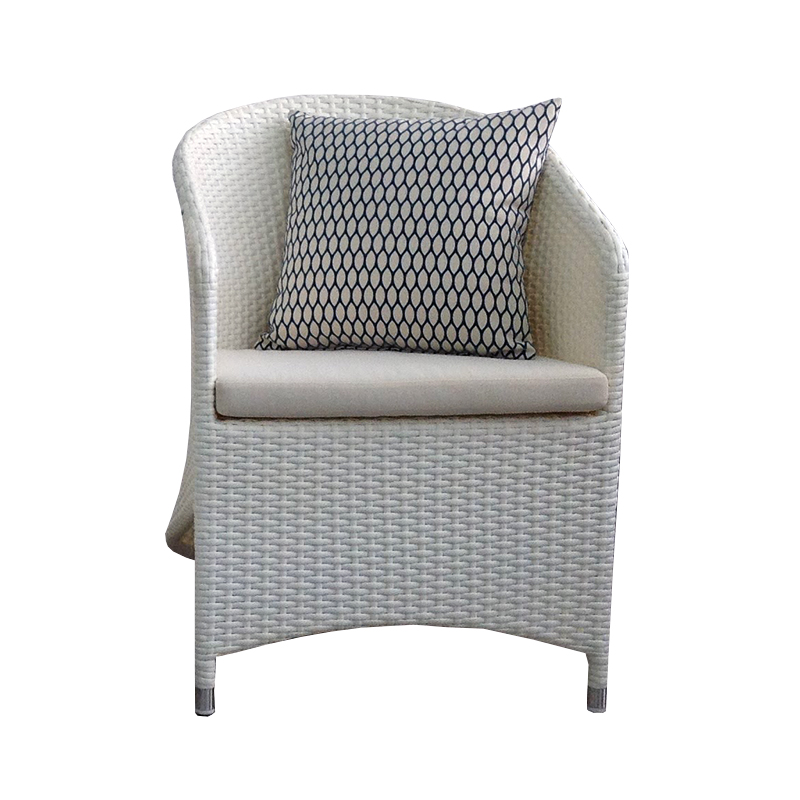 La poltrona Ravena es excelente para balcones o terrazas pequeñas, por su tamaño es práctica sin dejar de lado la comodidad. Está diseñada especialmente para espacios exteriores, sin embargo por su versatilidad puede usarse para crear una atmósfera de descanso en el interior de casa. Está elaborada en estructura de Aluminio, tejida a mano por artesanos en fibra de rattan sintético con tapones antideslizantes.