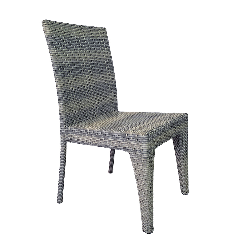 La silla Buffalo sin brazos es apilable, diseñada especialmente para ambientes al exterior, igualmente puede usarse en interiores por lo versátil que es. Combina perfectamente con mesas de comedor redondas o cuadradas. Elaborada en estructura de Aluminio, tejida a mano en rattan sintético.