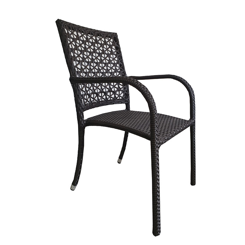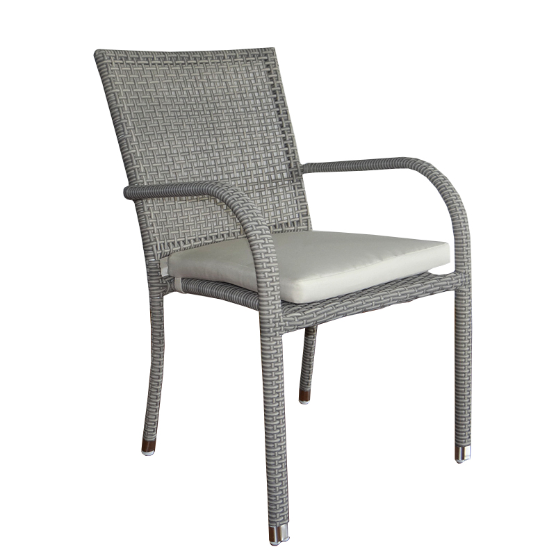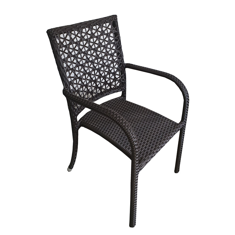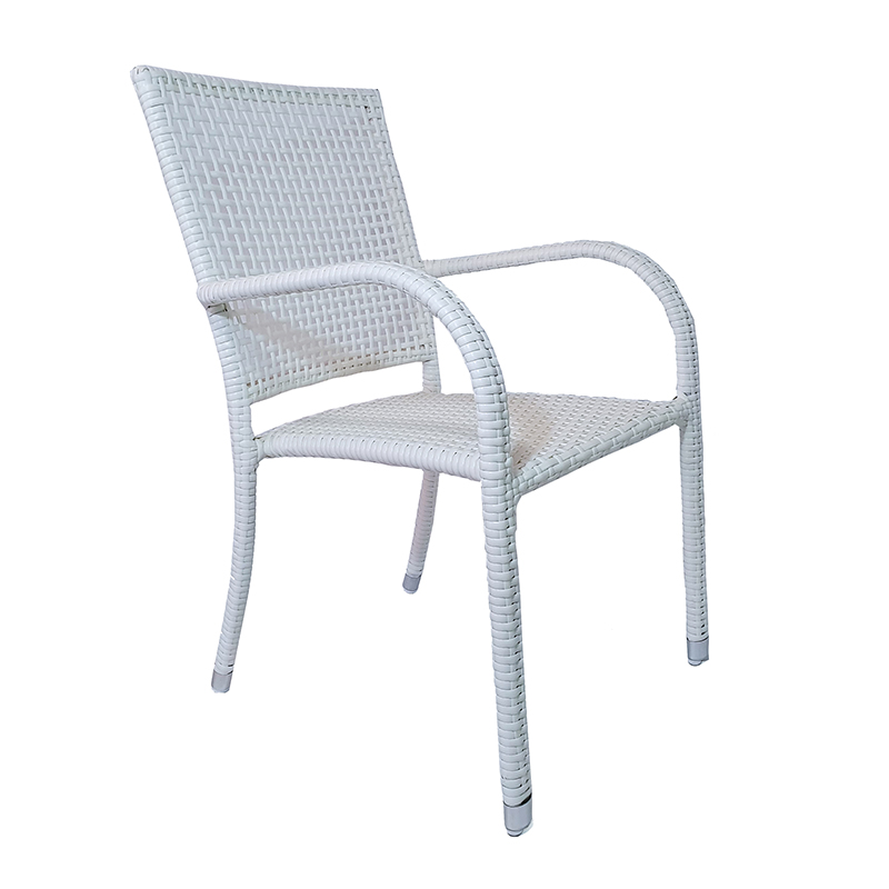 La silla Detroit con brazos curvos, es apilable. Es una pieza que complementa el comedor Detroit, o que combinándola con una mesa auxiliar se puede crear un juego de terraza. ideal para exteriores, igualmente puede usarse en interiores por lo versátil que es. Elaborada en estructura de Aluminio, tejida a mano por artesanos en fibra de rattan sintético con tapones antideslizantes. Espaldar tejido personalizable.
