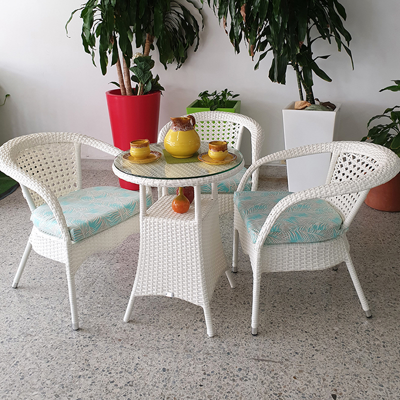 El juego de terraza Miami es todo lo que necesitas para tu balcón. Unas poltronas super cómodas y una mesa para juegos, una deliciosa merienda o cena mirando las estrellas. Ahora tu balcón será tu lugar favorito de casa.