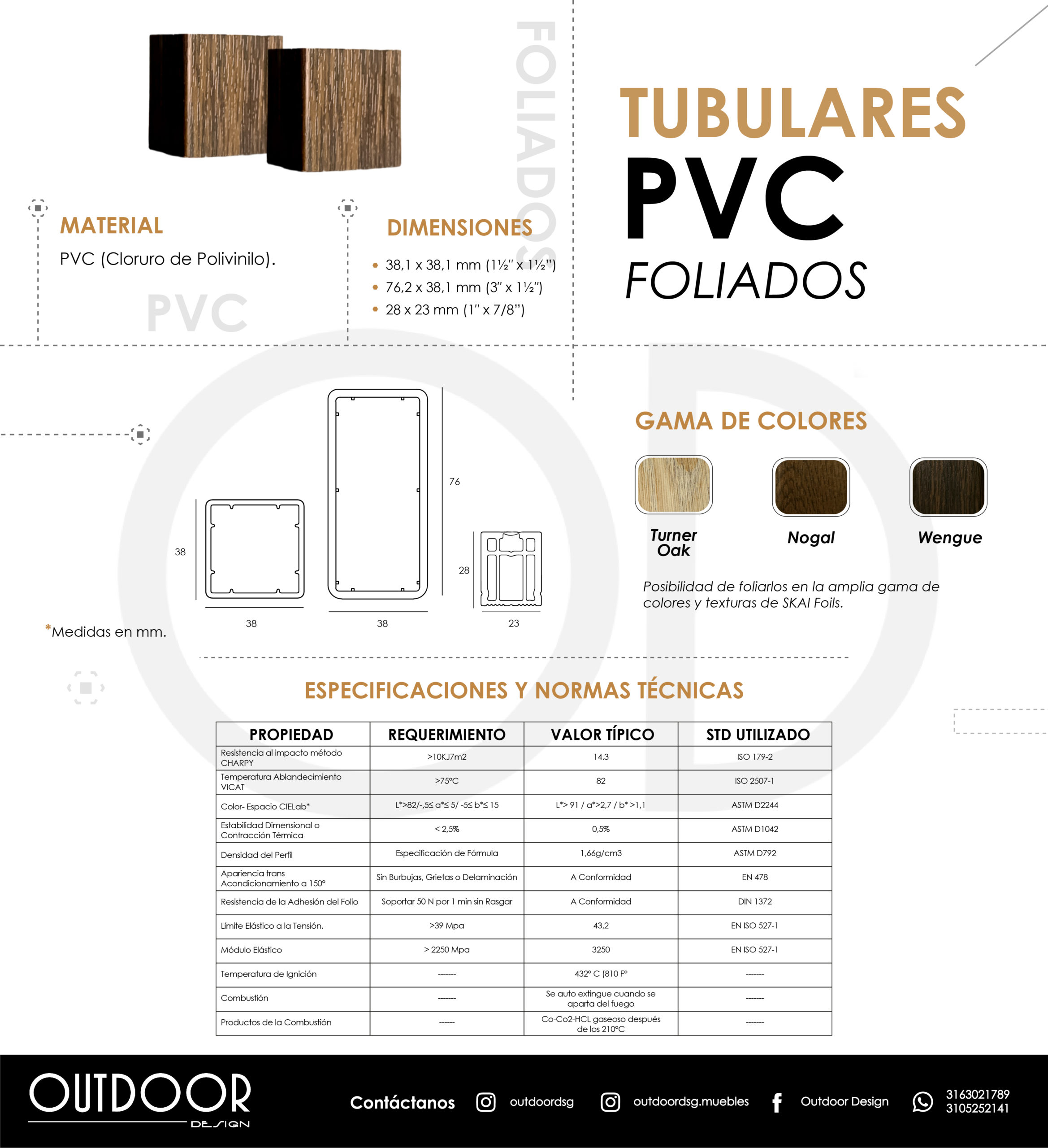 PERFILERÍA PVC FOLIADA cuadrada y rectangular, texturizada tipo madera con protección UV. Con una longitud máxima de 5.8 metros de largo. Amigable con el medio ambiente. Con una GARANTÍA de 10 años.